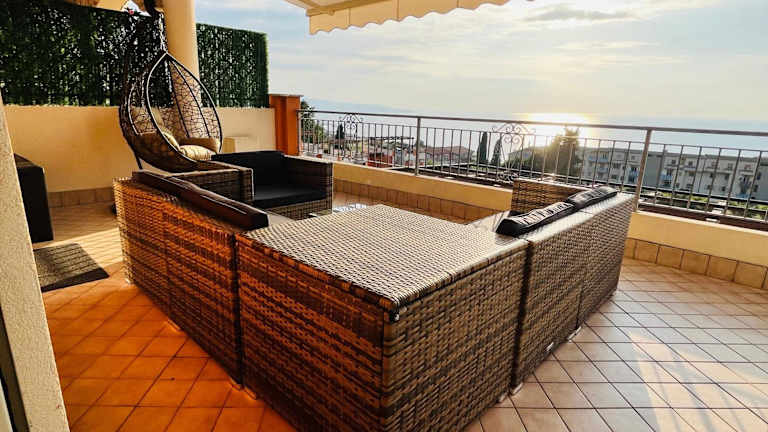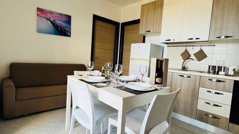 Die Ferienwohnung umfasst zwei Schlafzimmer, ein Wohnzimmer sowie eine voll ausgestattete Küche mit Kühlschrank und Kaffeemaschine. Zudem stehen zwei Badezimmer mit Bidet und Dusche zur Verfügung. Handtücher und Bettwäsche werden ebenfalls bereitgestellt.