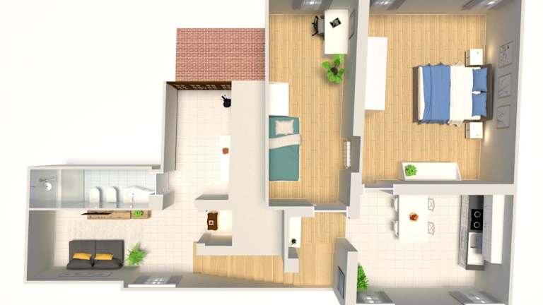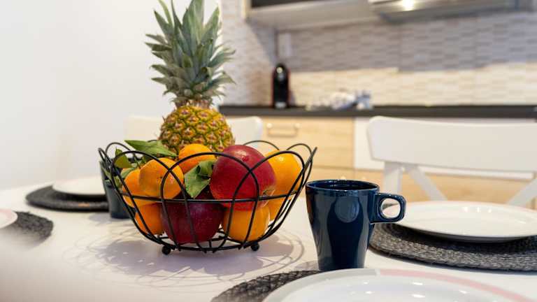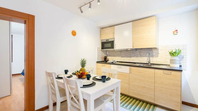Die Ferienwohnung besteht aus 2 Schlafzimmern, einem Wohnzimmer und einer voll ausgestatteten Küche mit Kühlschrank und Wasserkocher. Ein Badezimmer mit Bidet und Dusche zählt ebenfalls zur Ausstattung. Ein Flachbild-TV sorgt für Unterhaltung.