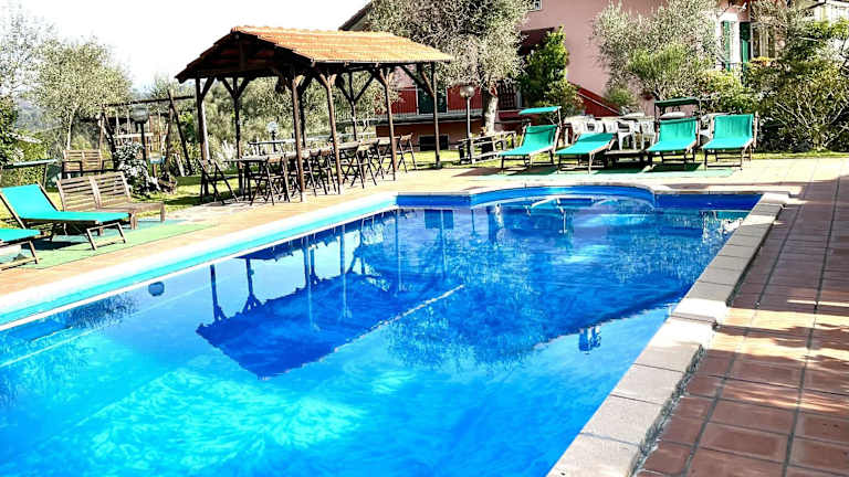 La Casa Rosa verfügt über Übernachtungsmöglichkeiten mit einem saisonalen Aussenpool, einem kostenlosen Privatparkplatz, einem Garten sowie einer Gemeinschaftslounge. Zudem werden Familienzimmer und ein Kinderspielplatz angeboten. Die Pension bietet Gartenblick und eine Terrasse.