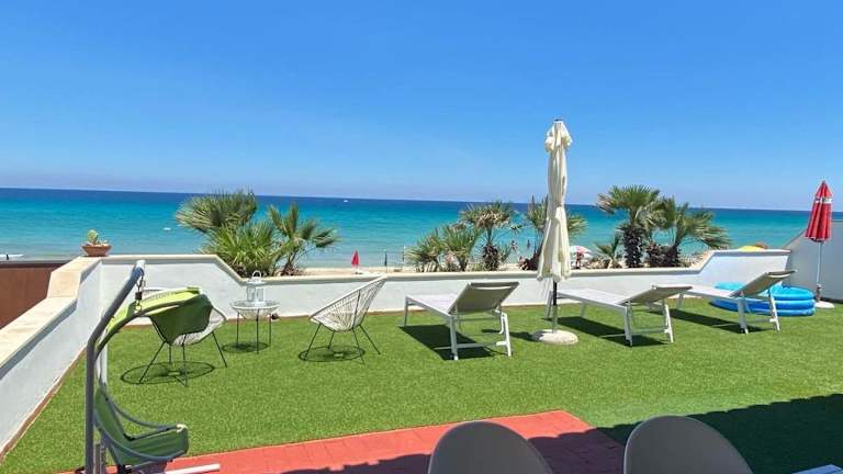 Die Villa La Casa sulla Spiaggia: Dimora Elma bietet angenehme Übernachtungsmöglichkeiten und verfügt über eine heimelige Gemeinschaftslounge sowie eine einladende Terrasse. Sie bietet zudem Wassersportmöglichkeiten und eine Gemeinschaftsküche, ideal für geselliges Beisammensein.