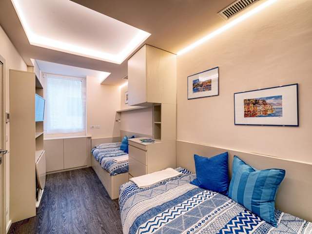 Die Ferienwohnung verfügt über 1 Schlafzimmer und 1 Badezimmer, ausgestattet mit einem Bidet, einer Dusche und kostenlosen Pflegeprodukten.