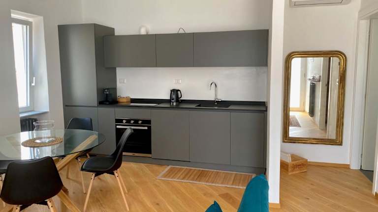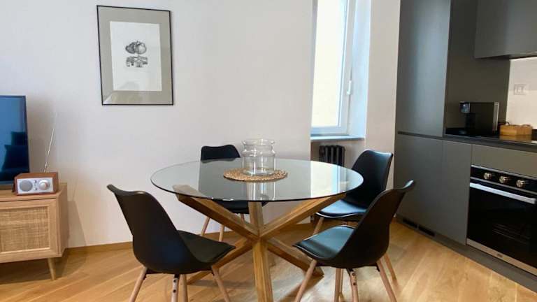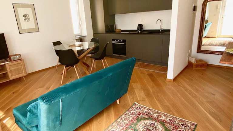 Die Ferienwohnung besteht aus 1 separaten Schlafzimmer und einem Wohnzimmer. Zudem ist eine voll ausgestattete Küche vorhanden, die es den Gästen ermöglicht, sich selbst zu verpflegen. Ein Badezimmer ergänzt die Ausstattung. Ein Flachbild-TV sorgt für Unterhaltung.