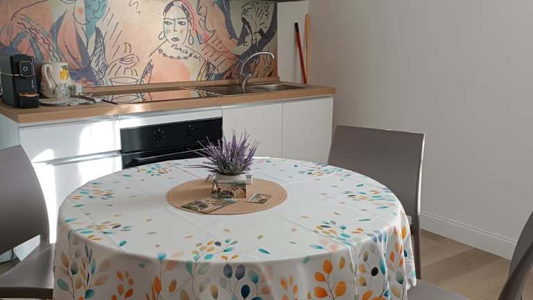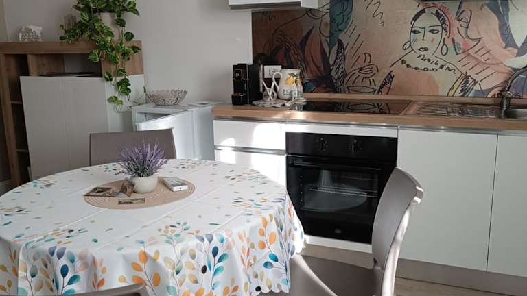 Die Ferienwohnung besteht aus einem Schlafzimmer, einem Wohnzimmer und einer voll ausgestatteten Küche mit Kühlschrank und Kaffeemaschine. Zudem gibt es ein Badezimmer mit Bidet und Dusche. Handtücher und Bettwäsche werden zur Verfügung gestellt. Die Unterkunft bietet auch Klimaanlage, Nichtraucherzimmer und Familienzimmer.