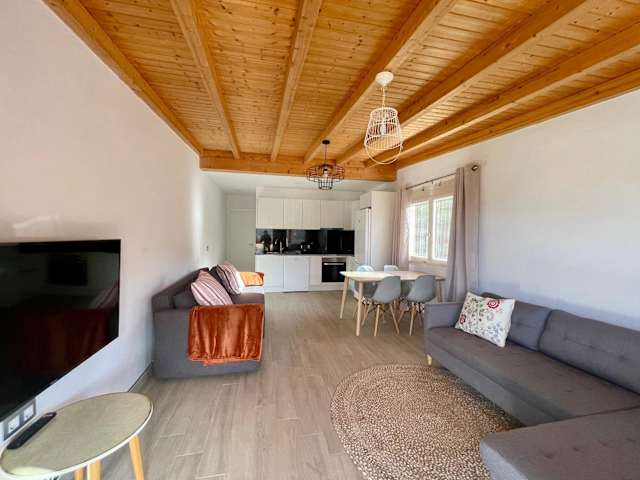 Die Ferienwohnung verfügt über ein Schlafzimmer, ein Wohnzimmer, eine gut ausgestattete Küche mit Kühlschrank und Geschirrspüler sowie ein Badezimmer mit Dusche. Eine Terrasse mit Bergblick lädt zum Entspannen ein. Zur Ausstattung gehören zudem ein Flachbild-TV sowie Handtücher und Bettwäsche.
