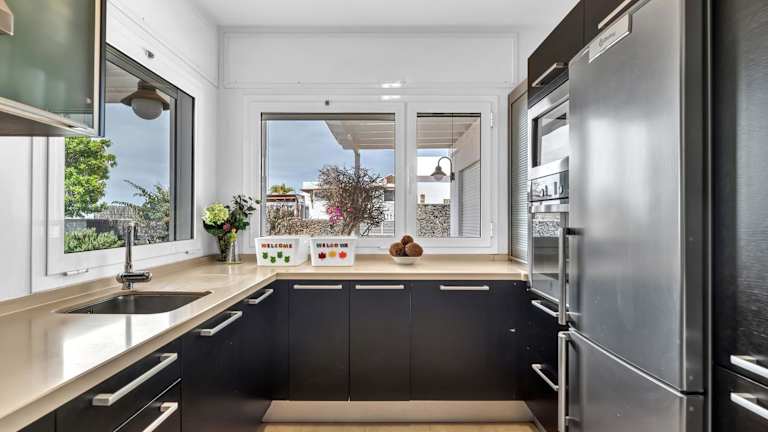 Die Villa hat drei Schlafzimmer und drei Badezimmer. Zur Ausstattung gehören Bettwäsche, Handtücher, ein TV mit Satellitenkanälen sowie eine voll ausgestattete Küche. Eine Terrasse mit Meerblick und die Möglichkeit zur Nutzung eines eigenen Pools sind ebenfalls vorhanden.