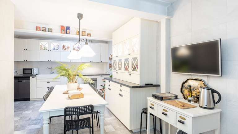 Die Zimmer umfassen 4 Schlafzimmer sowie ein Wohnzimmer und sind mit einem Flachbild-TV ausgestattet. Die gut ausgestattete Küche verfügt unter anderem über einen Kühlschrank und einen Geschirrspüler. Es stehen 3 Badezimmer zur Verfügung, darunter auch eines mit einem Bidet. Handtücher und Bettwäsche werden bereitgestellt.