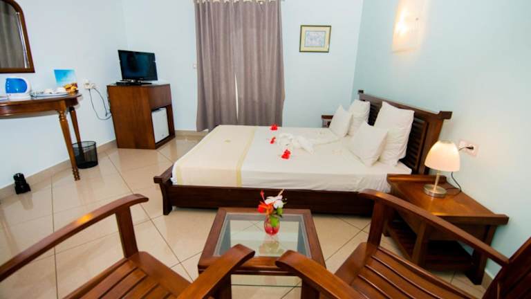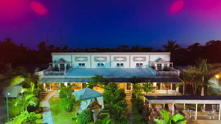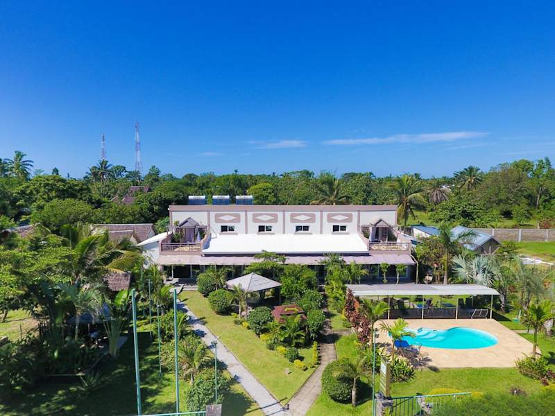 Das Hotel LA CIGALE liegt direkt am Strand in Foulpointe, umgeben von einer malerischen Landschaft. Die Umgebung bietet Gelegenheit für entspannende Spaziergänge und verschiedene Freizeitaktivitäten.