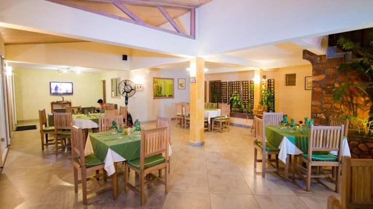Im Restaurant des Hotels wird französische Küche serviert. Die Bar lädt zum Verweilen ein. Es werden auch Kindermahlzeiten angeboten. Frühstück, Mittagessen und Abendessen können vor Ort genossen werden.