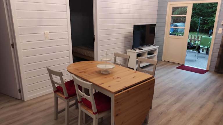 Das Ferienhaus verfügt über 2 Schlafzimmer, ein Wohnzimmer mit Flachbild-TV, eine gut ausgestattete Küche mit Kühlschrank und Geschirrspüler sowie ein Badezimmer mit Dusche. Handtücher und Bettwäsche werden bereitgestellt.