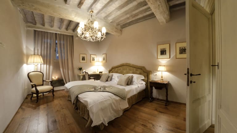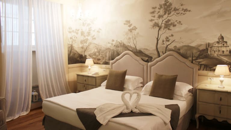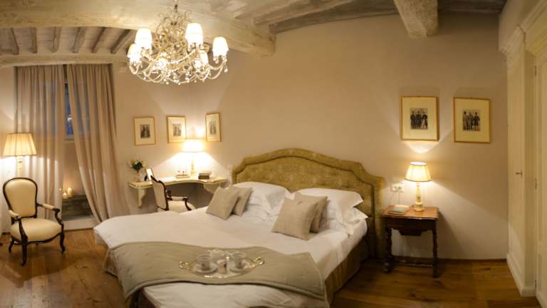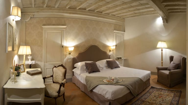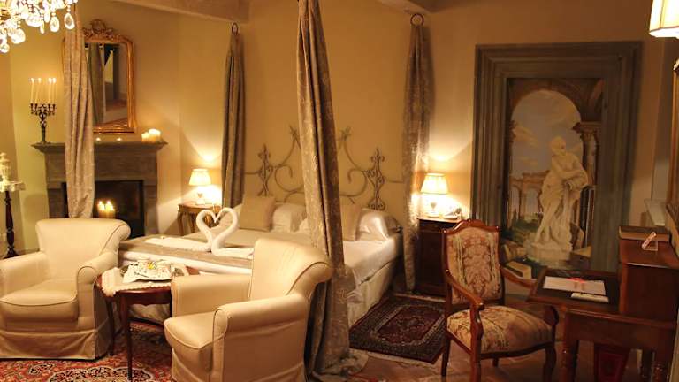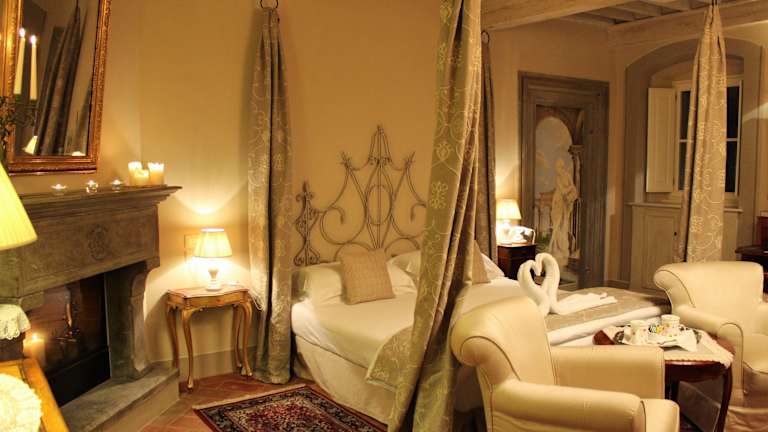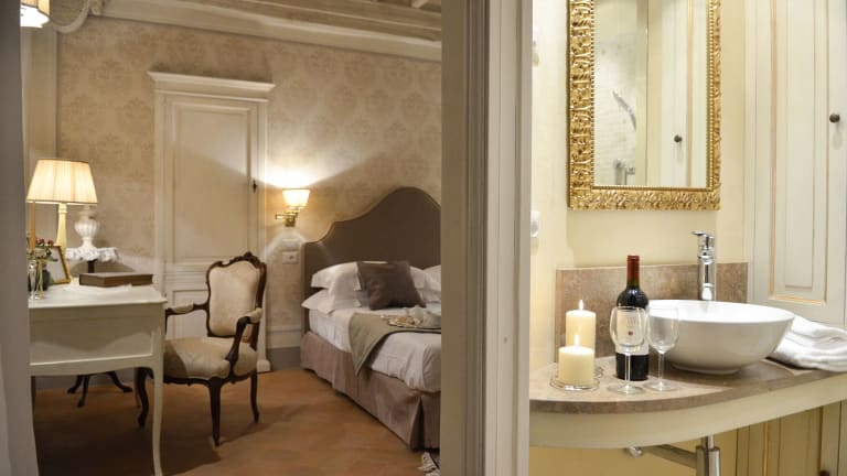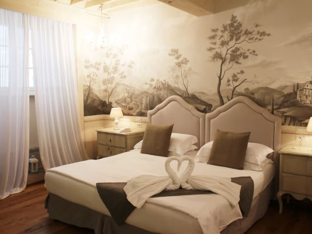 Die Zimmer im Hotel La Corte Di Ambra sind komfortabel und stilvoll eingerichtet. Sie sind klimatisiert und verfügen über Annehmlichkeiten wie eine Minibar und einen Flachbild-Sat-TV. Das private Badezimmer ist mit einem Haartrockner, Bademänteln und kostenlosen Pflegeprodukten ausgestattet. Einige Zimmer bieten sogar eine Whirlpool-Badewanne oder beeindruckende Fresken, die einen Hauch von Luxus verleihen.