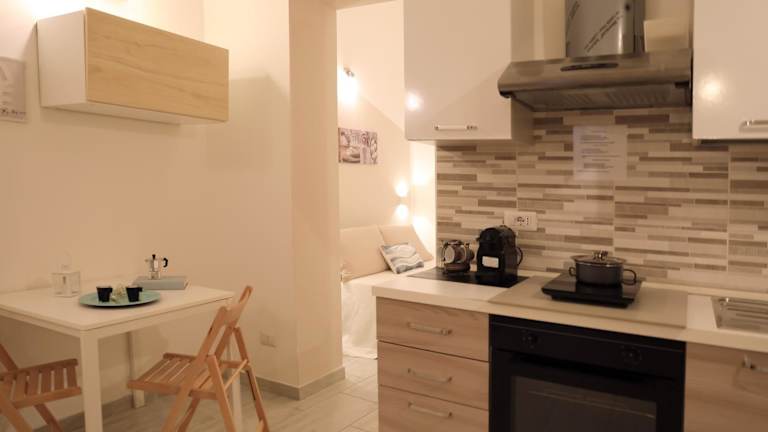 Die Ferienwohnung hat einen Schlafraum und ist mit Klimaanlage ausgestattet. Das Badezimmer verfügt über ein Bidet, eine Dusche und kostenlose Pflegeprodukte. Die Küche umfasst einen Kühlschrank, einen Ofen, eine Herdplatte sowie eine Kaffeemaschine und einen Wasserkocher. WLAN ist in allen Bereichen inklusive.
