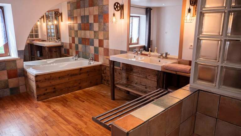 La Ferme 1807 Vosges bietet Übernachtungsmöglichkeiten in einem heimeligen Ferienhaus mit Garten, kostenlosem Wifi, einer Gemeinschaftsküche und einer Gemeinschaftslounge. Die Unterkunft verfügt über eine Terrasse mit Bergblick sowie Wellnesseinrichtungen wie einen Whirlpool und eine Sauna.