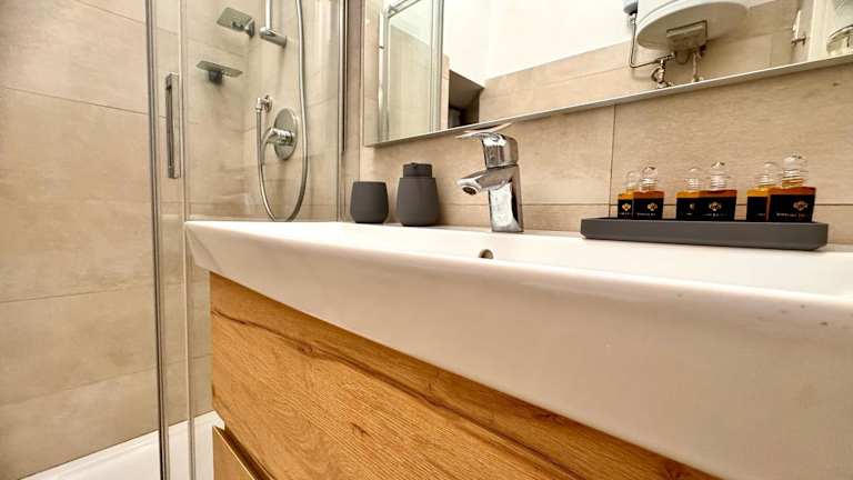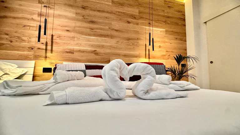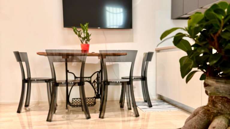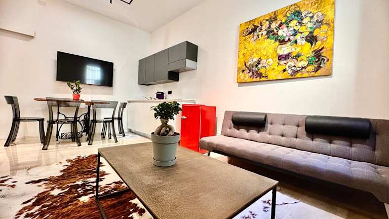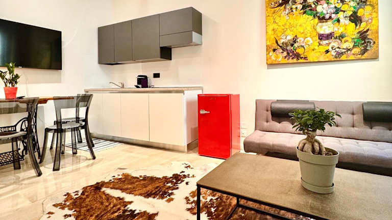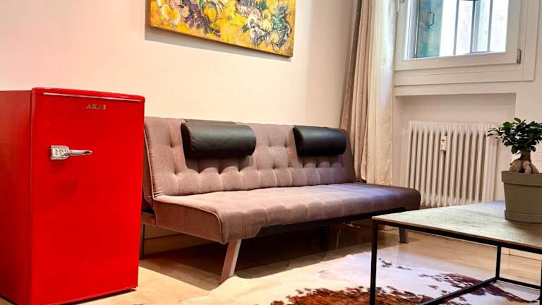 Die Ferienwohnung besteht aus einem Schlafzimmer, einem Wohnzimmer und einer voll ausgestatteten Küche mit Kühlschrank und Kaffeemaschine. Zudem verfügt sie über ein Badezimmer mit Bidet und Dusche. Handtücher und Bettwäsche werden bereitgestellt. Die Ferienwohnung ist klimatisiert und bietet schallisolierte Zimmer sowie allergikerfreundliche Räume.