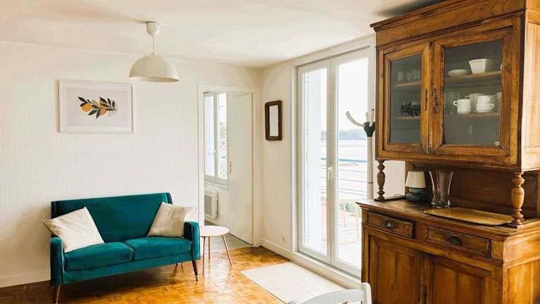 La Forêt-Fouesnant, appartement rénové pour 2, accès direct plage - FR-1-481-163 bietet Übernachtungsmöglichkeiten mit Meerblick und kostenlosem Wifi. Die Ferienwohnung hat eine Terrasse.