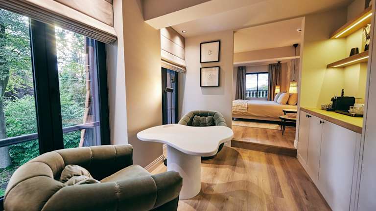 Die Zimmer sind ausgestattet mit einem Kühlschrank, einer Minibar, einer Kaffeemaschine und einem Wasserkocher.