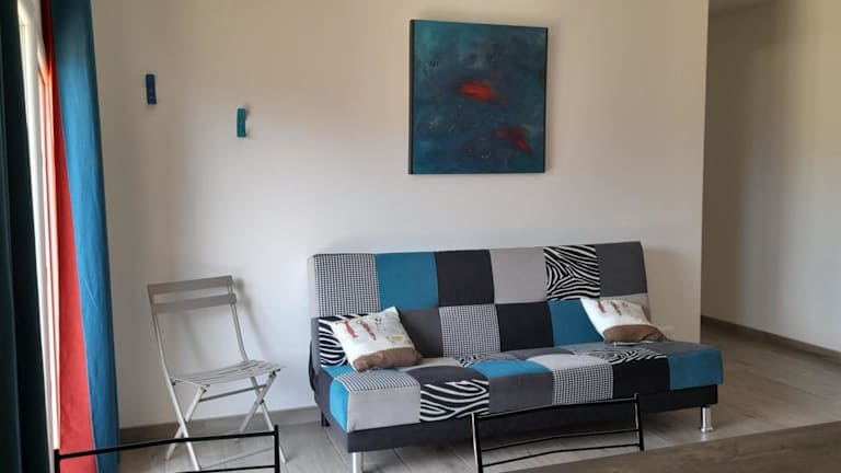 Die Ferienwohnung im Erdgeschoss besteht aus einem Schlafzimmer, einer gut ausgestatteten Küche mit Kühlschrank und Ofen, einem Wohnzimmer und einem Flachbild-TV. Handtücher und Bettwäsche werden bereitgestellt.