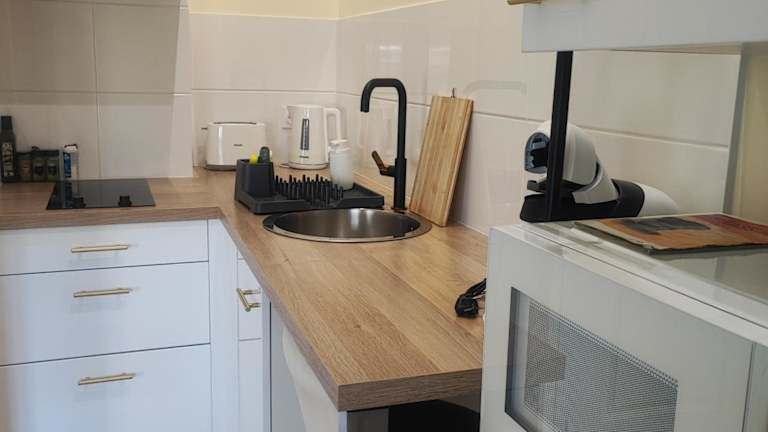 Die Ferienwohnung umfasst 1 Schlafzimmer und 1 Badezimmer. Sie ist ausgestattet mit Bettwäsche, Handtüchern, einem Flachbild-TV mit Satellitenkanälen, einem Essbereich, einer voll ausgestatteten Küche und einer Terrasse mit Blick auf den Garten.