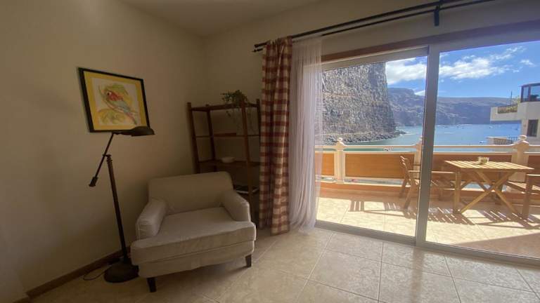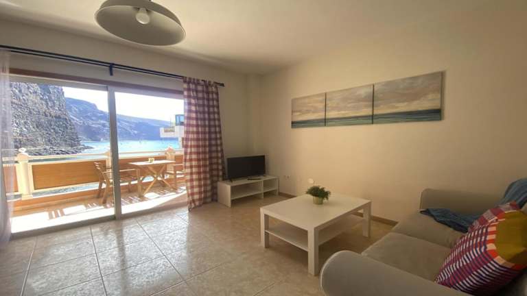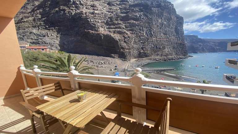 Die Unterkunft La Hoya de Vueltas bietet einen Balkon mit Meerblick. Die Ferienwohnung verfügt über ein Wohnzimmer sowie eine voll ausgestattete Küche mit Mikrowelle und Toaster. Ein TV sorgt für Unterhaltung.