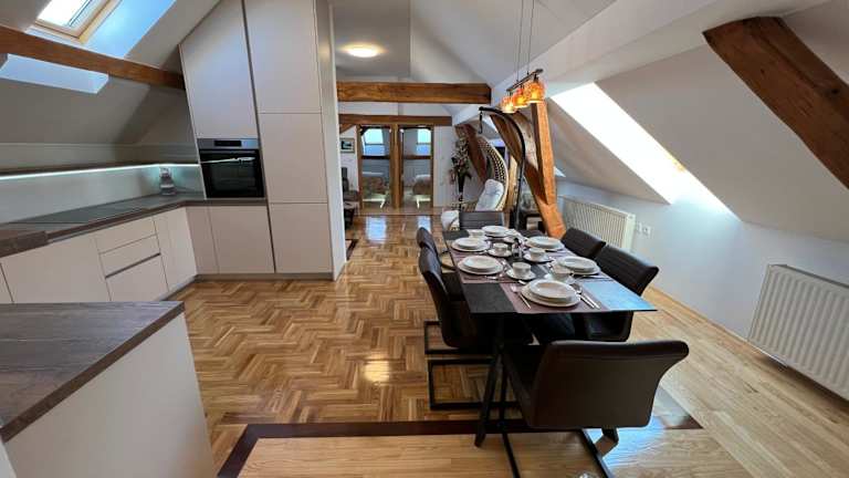 Die Unterkunft La Luna Rustic Deluxe Apartment mit kostenlosem Jacuzzi und Fahrrädern befindet sich in Našice, 47 km vom GeoPark Papuk Besucherzentrum entfernt und in der Nähe des Strossmayer Parks, welcher 37 km entfernt ist.