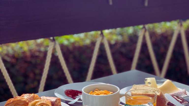 Die Gäste können ein Frühstück in Buffetform geniessen. Im Restaurant steht eine Auswahl an Speisen bereit, während die Bar Getränke serviert. Zusätzlich sind Snacks wie Zvieri erhältlich.
