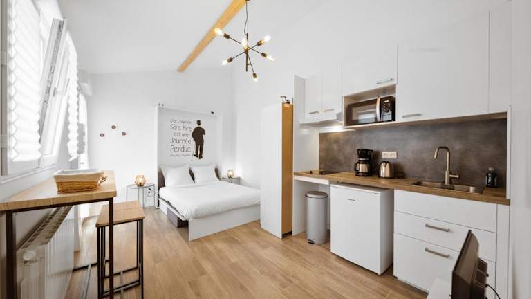 Die Wohneinheiten bieten eine gut ausgestattete Küche mit Kühlschrank, Mikrowelle, Herdplatte, Kaffeemaschine und Wasserkocher, wodurch Gäste die Möglichkeit haben, ihre eigenen Mahlzeiten zuzubereiten.