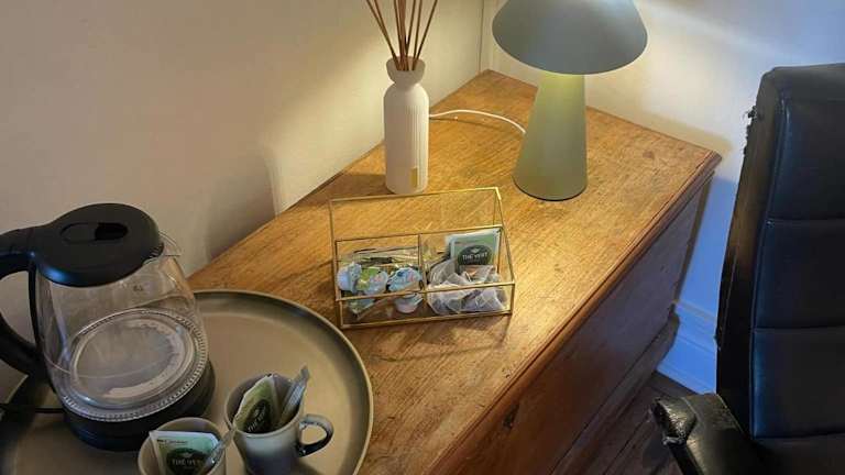 Es ist ein voll ausgestattetes Gemeinschaftsbad verfügbar, das mit einer Dusche und kostenlosen Pflegeprodukten ausgestattet ist.