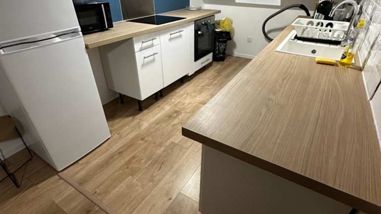 Die Ferienwohnung ist mit zwei Schlafzimmern ausgestattet. Die Einrichtung umfasst einen Flachbild-TV mit Satellitenkanälen sowie eine voll ausgestattete Küche, die einen Kühlschrank, einen Geschirrspüler, eine Waschmaschine, einen Ofen und eine Mikrowelle beinhaltet.