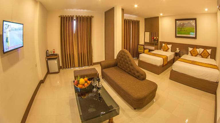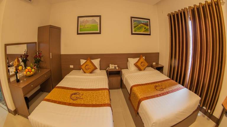 Das La Paloma Hotel Ninh Binh bietet 3-Sterne-Unterkünfte in einer günstigen Lage in Ninh Binh. Mit einer 24-Stunden-Rezeption, einem Restaurant und einem Kinderspielplatz ist dieses Hotel ideal für einen angenehmen Aufenthalt. Die Zimmer sind komfortabel eingerichtet und verfügen über ein eigenes Bad. Genießen Sie das Frühstück im Hotel und nutzen Sie die Annehmlichkeiten wie das Businesscenter und die Bar. Die Sehenswürdigkeiten wie der Bai-Dinh-Tempel und die Kathedrale Phat Diem sind in der Nähe.