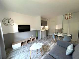 Die Ferienwohnung ist ausgestattet mit einem Schlafzimmer, einer Küchenzeile mit Kühlschrank und Geschirrspüler, einem Flachbild-TV, einem Sitzbereich sowie einem Badezimmer mit Badewanne. Handtücher und Bettwäsche werden ebenfalls zur Verfügung gestellt.