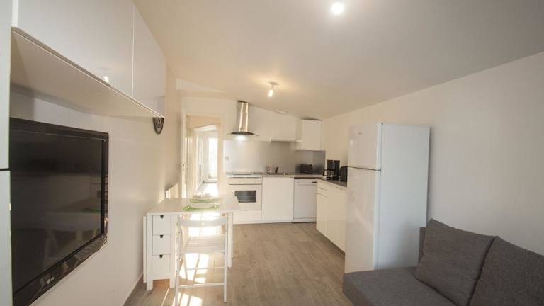 Die Ferienwohnung besteht aus einem Schlafzimmer, einem Wohnzimmer und einer voll ausgestatteten Küche, die mit einem Kühlschrank und einer Kaffeemaschine ausgestattet ist. Zudem umfasst sie ein Badezimmer mit Dusche und Haartrockner sowie einen Flachbild-TV.