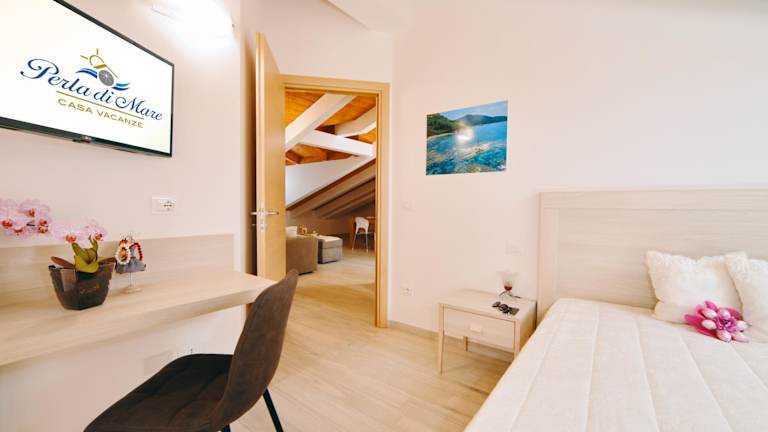 La perla di mare besticht durch klimatisierte Übernachtungsmöglichkeiten mit einer Veranda bzw. Patio. Die Ferienwohnung überzeugt mit einer Terrasse, drei Schlafzimmern, einem Wohnzimmer, einem Satelliten Flachbild-TV sowie einer gut ausgestatteten Küche. Zudem stehen zwei Badezimmer mit Bidet und Dusche zur Verfügung. Handtücher und Bettwäsche werden bereitgestellt.