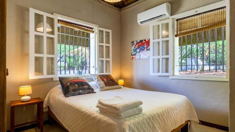 Dieses Ferienhaus mit Klimaanlage besteht aus 4 separaten Schlafzimmern, einer voll ausgestatteten Küche mit Kühlschrank und Geschirrspüler sowie 3 Badezimmern. Zusätzlich bietet die Unterkunft einen Balkon und grillmöglichkeit.