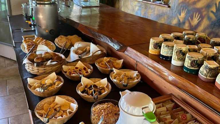 Gäste können ein Frühstück in Buffetform geniessen. Ferner steht eine voll ausgestattete Küche mit Kühlschrank, Herdplatte, Ofen und Wasserkocher zur Verfügung, um eigene Mahlzeiten zuzubereiten.