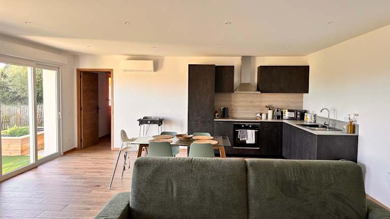 Die Ferienwohnung besteht aus einem Schlafzimmer, einem Wohnzimmer und einer voll ausgestatteten Küche mit Kühlschrank und Kaffeemaschine. Des Weiteren verfügt sie über ein Badezimmer mit Dusche sowie kostenlosen Pflegeprodukten. Für die Bequemlichkeit der Gäste sind Handtücher und Bettwäsche vorhanden. Die Unterkunft ist klimatisiert und bietet Nichtraucherzimmer.