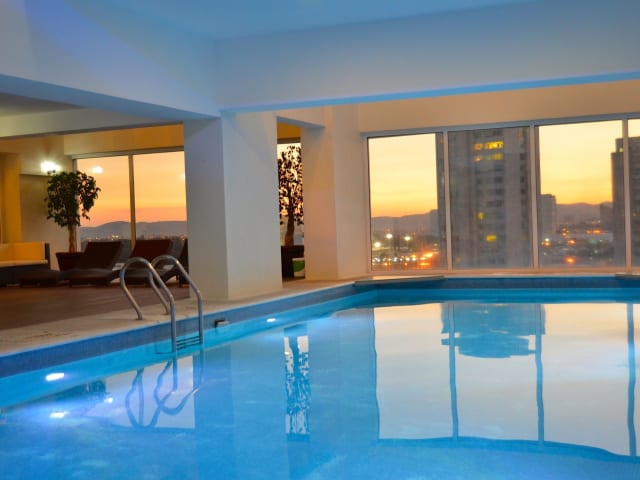 Das Hotel La Quinta Inn & Suites Puebla Palmas hat insgesamt 186 Zimmer, verteilt auf 15 Etagen, die komfortabel mit einem Aufzug erreichbar sind. Die Unterkunft verfügt über ein freundliches Personal, das den Gästen bei Fragen jederzeit behilflich ist. Neben einem Safe, einer Gepäckaufbewahrung und einer Wechselstube stehen auch verschiedene Serviceleistungen wie Zimmerservice, Babysitterservice und ein Business-Center zur Verfügung. Das Hotel wurde 2011 eröffnet und bietet zusätzliche Annehmlichkeiten wie eine Empfangshalle sowie rollstuhlgerechte Einrichtungen. Besucher können auch die Garage und den Parkplatz für ihr Auto nutzen.