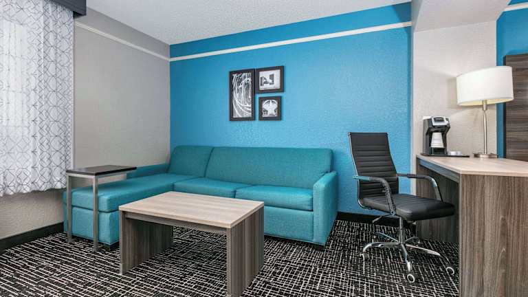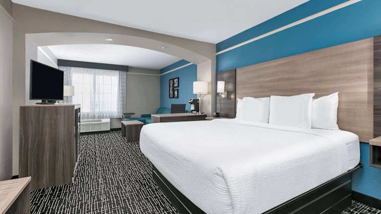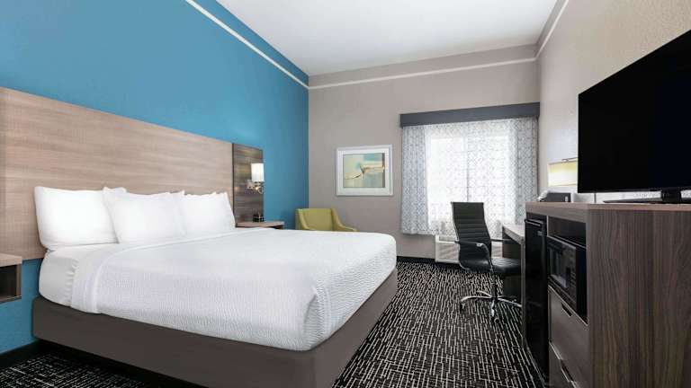 Das La Quinta Inn and Suites in Weatherford bietet eine angenehme Atmosphäre mit 62 Zimmern auf drei Etagen. Die Unterkunft verfügt über einen Aufzug, eine Rezeption, einen Sicherheitsdienst, einen Konferenzraum sowie ein Businesscenter. Es stehen Rollstuhlgerechte Einrichtungen zur Verfügung. Ein kostenloser Parkplatz ermöglicht den Gästen eine bequeme Anreise mit dem Auto. Im Haus gibt es einen Minimarkt für den täglichen Bedarf und die Möglichkeit, sich am Aussenpool sowie im Whirlpool zu erfrischen.