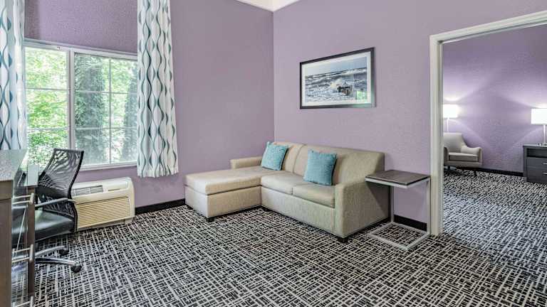 Das La Quinta Inn & Suites by Wyndham Norfolk bietet seinen Gästen 72 Zimmer auf 4 Etagen. Das Hotel verfügt über einen Aufzug, eine Gepäckaufbewahrung, einen Safe und einen Geldautomaten. Zu den Einrichtungen gehören auch ein TV-Raum sowie ein Minimarkt. Das freundliche Personal an der Rezeption steht den Gästen rund um die Uhr zur Verfügung. Rollstuhlgerechte Einrichtungen sind vorhanden. Ein unbewachter Parkplatz bietet Parkiermöglichkeiten, unterliegt jedoch der Verfügbarkeit. Freizeitmöglichkeiten umfassen zwei Pools, einen Innen- und Aussenpool, sowie ein Fitnessstudio.