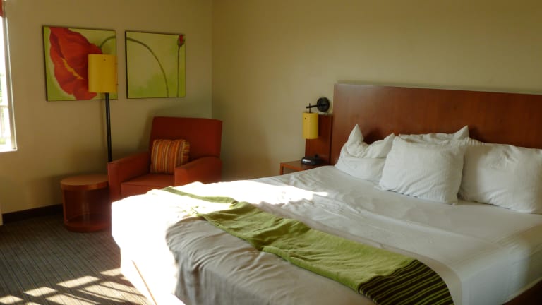 Die Zimmer sind mit Teppichboden ausgestattet und bieten entweder ein Doppelbett oder ein Kingsize-Bett. Die Ausstattung umfasst eine Klimaanlage, eine zentral steuerbare Heizung, einen Schreibtisch, einen Kühlschrank, eine Mikrowelle und eine Tee-/Kaffeemaschine. Zudem stehen ein Telefon, Sat-TV, ein Wecker und Wifi ohne Gebühr zur Verfügung. Die Badezimmer sind mit einer Dusche und einem Haartrockner ausgestattet.