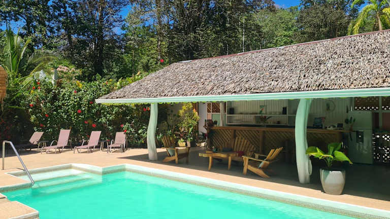 Das La Rana De Cahuita bietet einen ganzjährig geöffneten Aussenpool und einen heimeligen tropischen Garten. WLAN und die Privatparkmöglichkeiten stehen kostenfrei zur Verfügung.