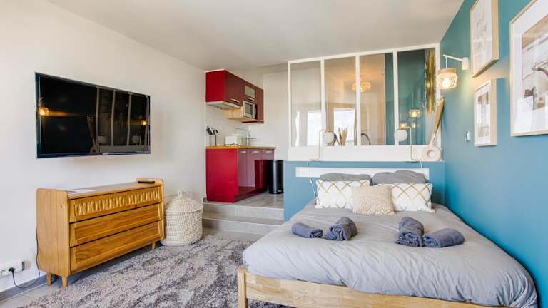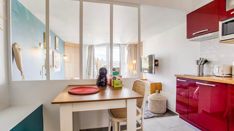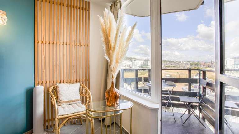 Die Ferienwohnung LA REV'RIE - vue sur mer avec balcon bietet eine herrliche Aussicht auf das Meer sowie auf den Fluss. Sie ist ideal für Gäste, die eine heimelige Unterkunft mit Balkon in Strandnähe suchen.