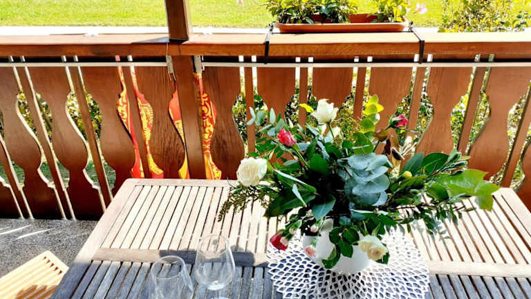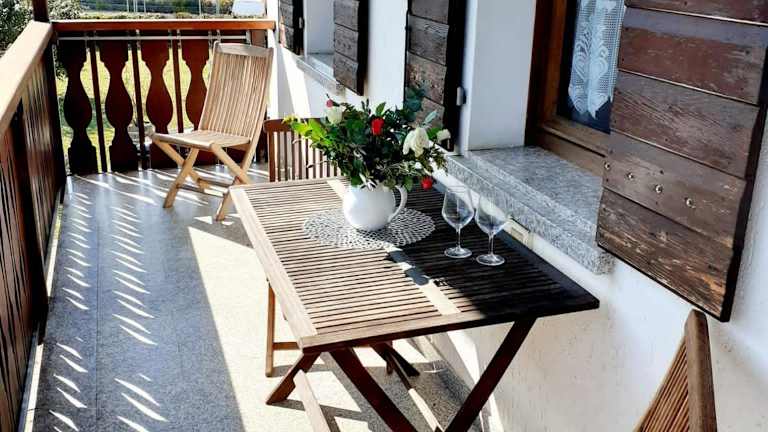 Die Ferienwohnung umfasst ein Schlafzimmer, ein Wohnzimmer und ein Badezimmer mit Bidet und Badewanne. Eine gut ausgestattete Küche ermöglicht die Zubereitung eigener Mahlzeiten. Ein Balkon mit Gartenblick bietet zusätzlichen Freiraum zur Entspannung.