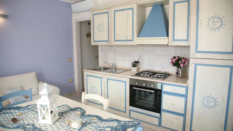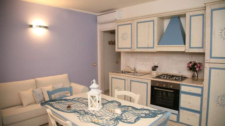Die Ferienwohnung besteht aus einem Schlafzimmer, einem Wohnzimmer sowie einer voll ausgestatteten Küche mit Kühlschrank und Kaffeemaschine. Das Bad ist mit einem Bidet und einer Dusche ausgestattet. Zu den Annehmlichkeiten zählen Klimaanlage, schallisolierte Zimmer, Handtücher und Bettwäsche.