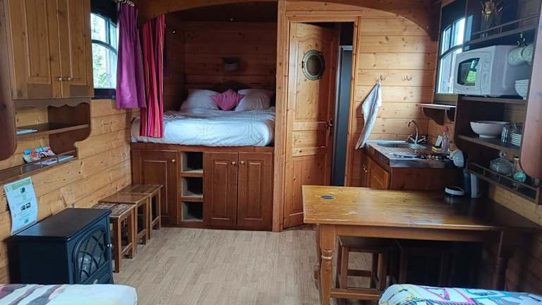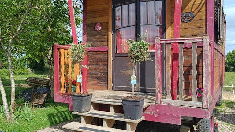 La roulotte de la tribu deschpouss bietet Übernachtungsmöglichkeiten in Form von gut ausgestatteten Unterkünften mit Balkon und Terrasse. Die Unterkunft ist privat geführt und es gelten spezielle Regelungen, wie ein Mindestalter von 18 Jahren für den Check-in.