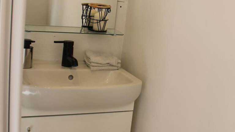 Die Unterkunft verfügt über ein Schlafzimmer, ein Wohnzimmer und eine voll ausgestattete Küchenzeile mit Kühlschrank und Wasserkocher. Das Badezimmer ist mit einer Dusche und kostenlosen Pflegeprodukten ausgestattet. Es sind WLAN und Klimaanlage vorhanden, und Handtücher sowie Bettwäsche werden bereitgestellt. Die Unterkunft ist rauchfrei und bietet eine heimaelige Atmosphäre.