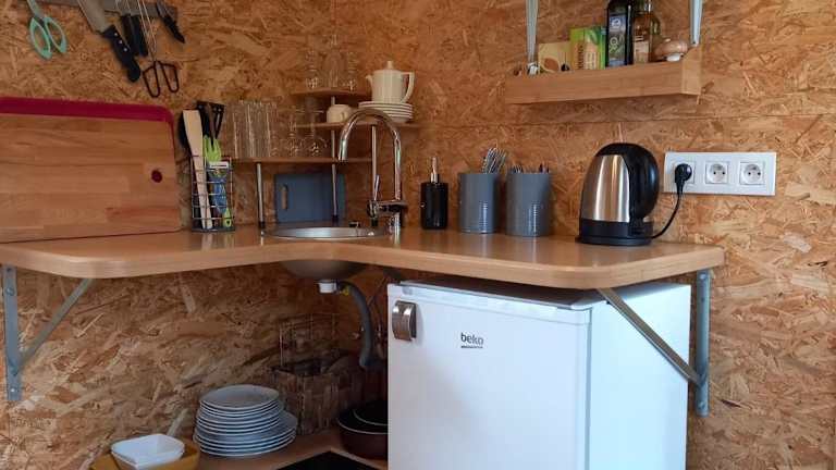 Die Unterkunft bietet Grillmöglichkeiten im Garten und einen Cafébereich vor Ort, wo kleine Snacks und Getränke erhältlich sein könnten. Weitere kulinarische Angebote werden nicht erwähnt.