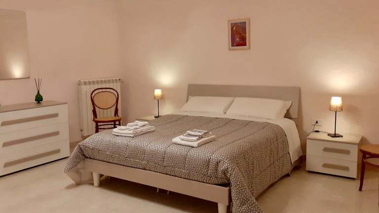 Das Ferienhaus besteht aus einem Schlafzimmer, einem Wohnzimmer sowie einer voll ausgestatteten Küche mit Kühlschrank und Kaffeemaschine. Zudem gibt es ein Badezimmer mit Bidet und Dusche. Handtücher und Bettwäsche werden zur Verfügung gestellt. Klimaanlage und gratis Wifi sind ebenfalls vorhanden.