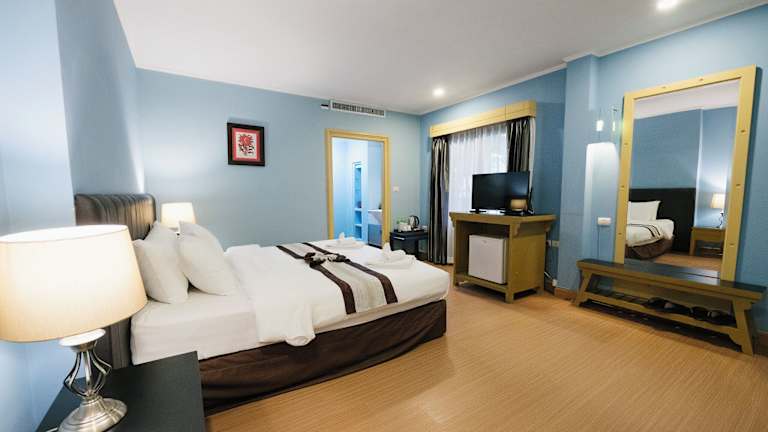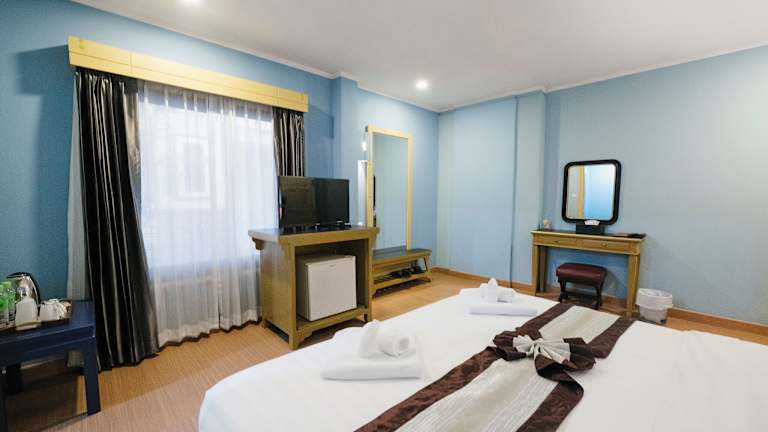 Die klimatisierten Zimmer sind ausgestattet mit einem Schreibtisch, einem Wasserkocher, einem Kühlschrank, einem Safe, einem Flachbild-TV sowie einem eigenen Badezimmer mit Dusche. Jedes Zimmer ist mit frischer Bettwäsche und Handtüchern bestellt.