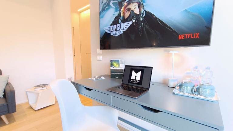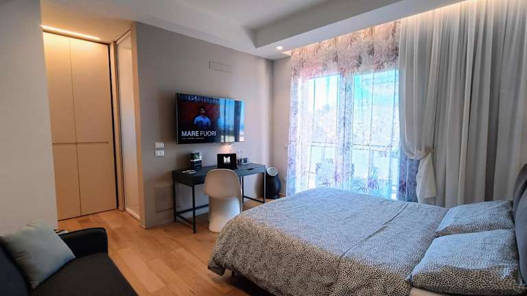 La stanza dell'architetto bietet klimatisierte Zimmer mit einem Balkon und Meerblick. Alle Zimmer sind ausgestattet mit kostenlosem Wifi, einem Schreibtisch, einer Kaffeemaschine, einer Minibar, einem Safe, einem Flachbild-TV und einem eigenen Badezimmer mit einem Bidet. Zudem sind Bettwäsche und Handtücher vorhanden.