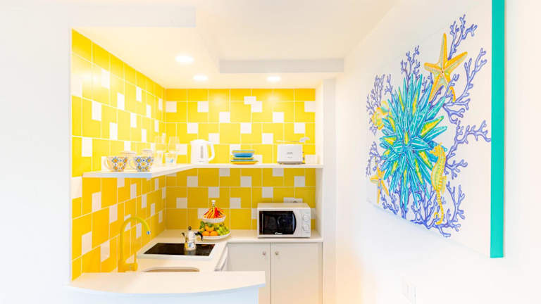 Die Ferienwohnung verfügt über 1 Schlafzimmer und 1 Badezimmer, das mit einem Bidet, einer Dusche sowie kostenlosen Pflegeprodukten ausgestattet ist. Die Küchenzeile bietet eine praktische Ausstattung mit einem Kühlschrank, einem Ofen, einer Mikrowelle, einer Kaffeemaschine und einem Wasserkocher. Die Unterkunft ist klimatisiert.