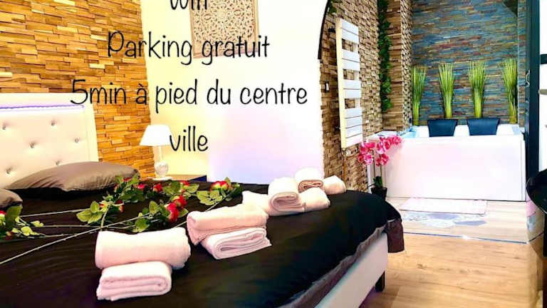La suite romantique Jacuzzi, parking gratuit, centre bietet Übernachtungsmöglichkeiten in einer gepflegten Ferienwohnung mit Zugang zu einem Whirlpool. Die Unterkunft ist heimelig und gut ausgestattet sowie mit gratis Wifi versehen.